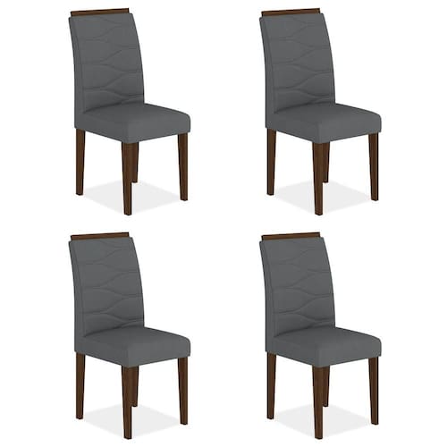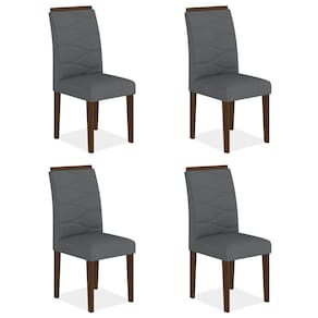 Kit 4 Cadeiras Vitória muito confortáveis, com toque macio e suave. Se destacam pelo design moderno e a praticidade no dia a dia, podendo ser utilizadas em diversos ambientes.