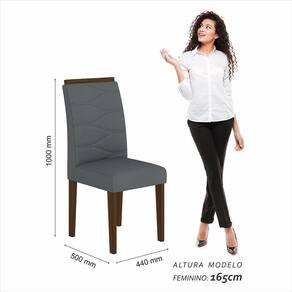Detalhes Técnicos das Cadeiras -Assento e Encosto Tapeçados, Estofados e Fixos -Cadeira suporta até 90KG -Facilidade da Montagem:Média -Tonalidade Cadeira:Imbuia/Suede Cinza -Espuma Assento:D16 -Espuma Encosto:D14 -Pintura UV Texturizada -Material Estrutura:MDF 25mm/18mm -Medida da Cadeira:100CMx44CMx50CM