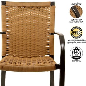 Combo para Piscina Ascoli - TRAMA Cadeiras de alumínio pintura com eletrostática, Mesa alta ripada e Ombrelone central com estrutura de madeira.Ideal para área de piscina, este combo compõe qualquer ambiente, com um designer moderno e leve, garante conforto e praticidade.Itens incls: 4 Cadeiras + 1 Mesa + Ombrelone + Base.- Cadeiras fabricadas em alumínio com pintura eletrostática e revestida em fibra sintética.Mais leve e resistente do que o Ferro, o Alumínio também pode ser molhado, pois não enferruja, a durabilidade cerca de 8 a 10 anos.- Mesa alta em alumínio com tampo ripado.- Ombrelone central em estrutura de Madeira, e base de concreto.Ambiente: Interno e externo, pode ficar exposto ao sol e chuva.Nossos produtos são de altíssima qualidade, leve e com design moderno, garantindo assim conforto e praticidade para seu bem-estar.Essa característica oferece resistência suficiente para o móvel ser em decorações de ambientes externos.Combinação em vários ambientes com traços modernos e clássicos, para todos os gostos!ALUMÍNIO MAIS RESISTENTE DO QUE FERRO, NÃO ENFERRUJA E MAIOR DURABILIDADE!Especificação do produto.- Estrutura: Alumínio, não enferruja;- Pintura: Eletrostática, não descasca;- Solda: Solda TIG, de alta resistência,- Acabamento: Fibra sintética com UV Protection;Fibra Sintética especial - Sua proteção UV proporciona maior durabilidade, resistente ao Sol e Chuva com proteção UV, a fibra sintética da Trama /UP Mobille é produzida com materiais de altíssima qualidade.Peso Máximo indicado: 140 Kg.GARANTIA: 1 ano de fábrica.FABRICANTE: TRAMA Nossos produtos são ideias para decorar ambientes clássicos e modernos, interno e externo como: Cozinha, Sala, Quarto, Varanda, Sacada, Edícula, Área de Piscina, Jardim, Área de lazer, Festa, Reunião, Churrasco, Área Gourmet, Recepção, Sala de espera, Sala de Filmes entre outros.Fácil de Limpar Utilize Sabão Neutro para a limpeza das fibras e estruturas.Passe um pouco com um pano macio, logo em seguida, passe outro pano macio, porém seco. Deixando assim, com o brilho novamente!.....TGA - Você também pode buscar por - Conjunto de área, cadeira de alumínio, cadeira de área, cadeira para piscina, cadeira para área de piscina, cadeira pintada, cadeira com pintura, cadeira para sacada, cadeira para sol, cadeira para varanda, cadeira gourmet, cadeira artesanal, kit de cadeiras, combo de cadeiras, cadeiras artesanais, cadeiras de fibra, cadeira de junco, cadeiras de móveis artesanais, cadeira sintética, jogo de cadeiras, cadeira resistente, cadeira vime, trama móveis, tramar cadeiras, mesa alta, mesa com tampo, mesa ripado, ombrelone, ombrelone central, para área de festa, sombreiro, guarda sol.