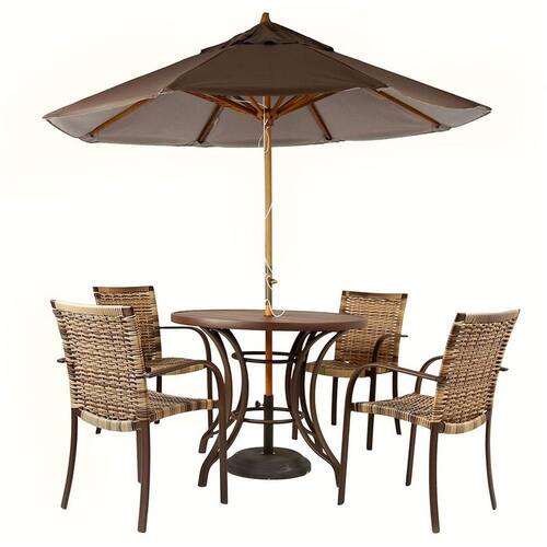 Kit 4 Cadeiras Ascoli Fibra Cor Cappuccino Com Mesa Ripado E Central Fibra Cor Marrom- Ideal Jardim, Piscina