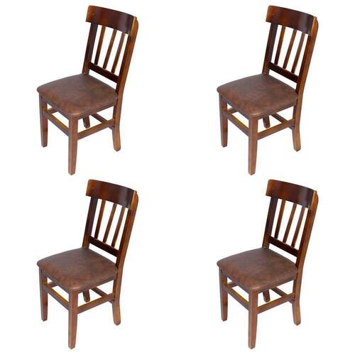 Kit 4 Cadeiras Fixas Imbuia Estofadas Marrom Mineira Em Madeira Maciça Para Bares - Cor: Marrom