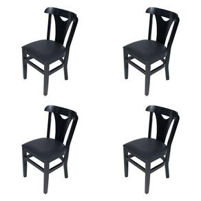 Kit 4 Cadeiras Fixas Pamplona Pretas Em Madeira Maciça Estofadas Pretas Para área Gourmet - Cor: Preto