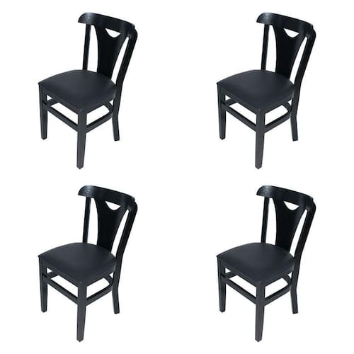 Kit 4 Cadeiras Fixas Pretas Estofadas Pretas Pamplona Em Madeira Maciça Para Bares - Cor: Preto