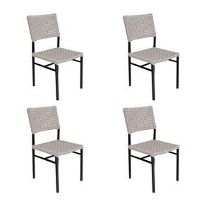 Kit 4 Cadeiras França Corda Náutica Base em Alumínio Preto/areia - Bege