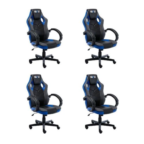 A cadeira Gamer que você precisa! A Gamer Quest é toda em couro ecológico com sua base em nylon. Ela possui o sistema relax e seus braços também são revestidos em couro ecológico, o que torna ela ainda mais confortável. Altura do Conjunto: 135 cm Ambiente: null Ambiente Principal: Escritório Cor: Preto/Azul Cor do Produto: Preto/Azul Informação Complementar: 4x Cadeira Gamer Giratória Regulável Quest Fratini Preto/Azul Largura: 54 cm Altura: 135 cm Peso: 15,69 kg Profundidade: 55 cm Necessita Montagem: Sim