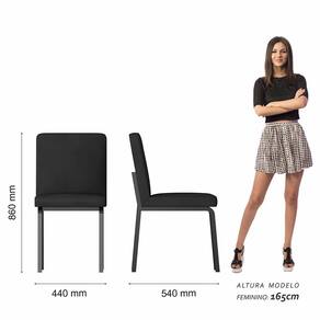 Detalhes Técnicos das Cadeiras - Assento e Encosto Tapeçados, Estofados e Fixos - Assento: D16 - Encosto: D14 - Estrutura: Metálica - Tonalidade: Preto Fosco/Corino Preto - Medida de cada Cadeira: Altura: 86cm x Largura: 44cm x Profundidade: 54cm - Peso Suportado da Cadeira: 90kg - Facilidade da Montagem: Difícil