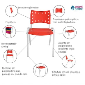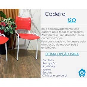 Kit 4 Cadeiras Iso Para Escola Escritório Comércio Vermelha Base Branca