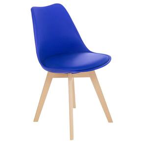 Madeira, PU sintético e polipropilenoKit 4 cadeiras jantar cozinha Leda Eames com assento estofado Azul Bic -