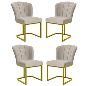 Kit 4 Cadeiras Jantar Flor Mesa Cozinha Reforçada Base Metal Dourada Cor:bege Bege