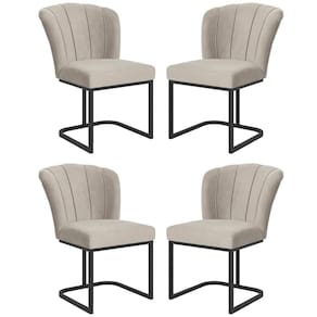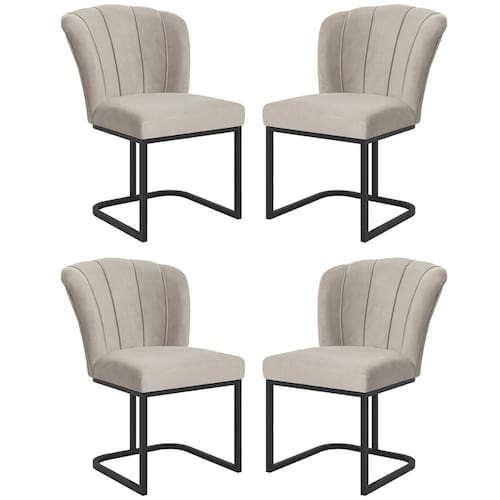 Kit 4 Cadeiras Jantar Flor Mesa Cozinha Reforçada Base Metal Preta Cor:bege Bege