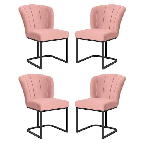Kit 4 Cadeiras Jantar Flor Mesa Cozinha Reforçada Base Metal Preta Cor:rosa Rosa
