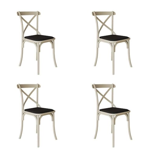 AS IMAGENS SÃO MERAMENTE ILUSTRATIVAS E PODEM SOFRER VARIAÇÕES DE COR E PEQUENOS DETALHES DE ACORDO COM O SEU MONITOR, ILUMINAÇÃO DO AMBIENTE E ATÉ MESMO A SUA PERCEPÇÃO VISUAL.Kit 4 Cadeiras Katrina Assento Corano Preto AÃo Off White