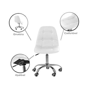 Para quem busca dar vida e sofisticação ao ambiente e conforto a Cadeira Office Eiffel Botonê é uma ótima opção. Ela se adapta a qualquer ambiente e é forte tendência em decoração. Projetadas para combinar com qualquer ambiente que você desejar usá-las: para sala de jantar, cozinha, no quarto ou escritório, áreas de lazer, e ambientes comerciais. A escolha de uma cadeira adequada é muito importante para evitar futuras lesões. Com esta cadeira você terá o conforto é o bem-estar que precisa ao longo do seu dia. Além disso, você pode colocá-la em qualquer lugar da sua casa ou oficina, pois o seu design se adapta a vários ambientes. Dê um toque mais moderno aos seus espaços! Conforto em todos os momentos O seu encosto reclinável lhe permitirá regular os diferentes pontos de inclinação, bem como deixá-la em posição livre para balançar durante as pausas e descansos. Ajuste-a a sua medida Com seu ajuste de altura, você poderá fixar a posição de seu torso em relação à mesa de trabalho e assim obterá uma cadeira mais confortável ao nível de suas necessidades. Mantenha-se em movimento As rodas permitirão a você mover e limpar facilmente o seu espaço. Você será capaz de movê-la sem dificuldade quando ém disso, sendo giratória, permitirá que você gire o assento 360 sem a necessidade de mudar de posição ou se mover de onde você está.