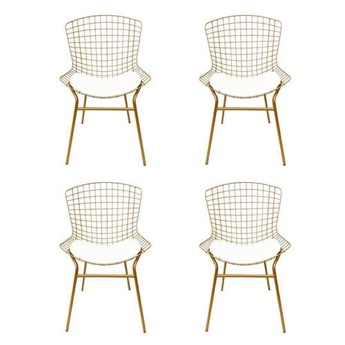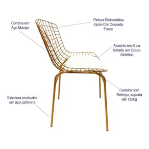 A Cadeira Bertoia Tubular é um produto de alta qualidade e possui um design clássico que certamente será o destaque da sua cozinha ou área gourmet. Com uma estrutura em pintura eletrostática epóxi cor dourado fosco, assento em e.v.a revestido com material sintético cor branco e concha fabricada em ferro maciço, essa cadeira é resistente e durável. Além disso, seus pés são produzidos em tubo 5/8" reforçado, garantindo ainda mais estabilidade e segurança para seus usuários.