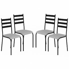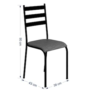 *Podem ocorrer variações de cores nos assentos das cadeiras em relação às fotos.* Acabamento: Fosco Almofada do assento: Fixa Altura do assento até o chão: 44 cm Ambiente Principal: Cozinha codigo_ean: 7900288205933 Complexidade da Montagem: Baixa: pode ser montado por uma pessoa sozinha Cor: Preto/Cinza Cor do Produto: Preto/Cinza Cor dos Pés: Preto Dobrável: Não Escala de Brilho: Fosco Estrutura do Encosto: Aço Giratória: Não Itens Inclusos: 4 Cadeiras, Kit Ferragens e Manual de Montagem Manual de Montagem e Instalação: https://product-hub-prd.madeiramadeira.com.br/131487914/documents/c39baf05-255b-45fa-942b-eb9dda321e043117107654817543327883759.pdf Marca: MBM DECOR Material dos Pés: Aço Material Principal: Aço Necessita Montagem: Sim Origem do Produto: Nacional Peso: 2,9 kg Possui Apoio para Braços: Não Possui Apoio Para os Pés: Não Possui Assento/Encosto Estofados: Possui Somente o Assento Estofado Possui Espaldar: Sim Possui Rodízio: Não Recomendações de Uso, Manutenção e Limpeza: Limpar com pano úmido. Uso recomendado para adultos e áreas internas. Sistema de Montagem: Já vai com todos parafusos necessários. Necessíta chave Philips. Tipo de Assento: Fixo Tipo de Encosto: Fixo Marca: Não Informado