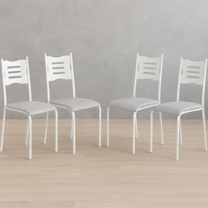 *Podem ocorrer variações de cores nos assentos das cadeiras em relação às fotos.* Acabamento: Brilhante Acabamento da Estrutura: Pintura Almofada do assento: Fixa Altura do assento até o chão: 44 cm Ambiente Principal: Cozinha codigo_ean: 7900288209733 Complexidade da Montagem: Baixa: pode ser montado por uma pessoa sozinha Cor: Branco/Cinza Cor do Produto: Branco/Cinza Cor dos Pés: Branco Dobrável: Não Escala de Brilho: Brilhante Estrutura do Encosto: Aço Giratória: Não Itens Inclusos: 4 Cadeiras e Kit Ferragens Manual de Montagem e Instalação: https://product-hub-prd.madeiramadeira.com.br/741996036/documents/a0aff98e-7220-49cc-8907-a3d6c287fdb33124762654817546608469974.pdf Marca: MBM DECOR Material dos Pés: Aço Material Principal: Aço Necessita Montagem: Sim Origem do Produto: Nacional Peso: 2,9 kg Possui Apoio para Braços: Não Possui Apoio Para os Pés: Não Possui Assento/Encosto Estofados: Possui Somente o Assento Estofado Possui Rodízio: Não Recomendações de Uso, Manutenção e Limpeza: Limpar com pano úmido. Uso recomendado para adultos e áreas internas. Sistema de Montagem: Já vai com todos parafusos necessários. Necessíta chave Philips. Tipo de Assento: Fixo Tipo de Encosto: Fixo Marca: Não Informado