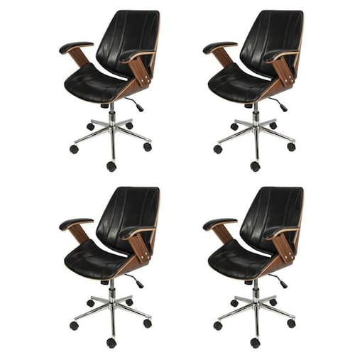 Se você é a pessoa que busca uma cadeira de escritório confortável e bonita! Indicada para acrescentar um toque especial e elegante ao seu ambiente, com estrutura em madeira e rodízios que não danificam o piso, sistema relax e base cromada. Produto Montado: Sim Altura do Conjunto: 97 cm Ambiente: null Ambiente Principal: Escritório Braço com Ajuste de Altura: Não codigo_ean: 7909903905142 Complexidade da Montagem: Baixa: pode ser montado por uma pessoa sozinha Cor: Preto Cor do Produto: Preto Empilhável: Não Encosto Reclinável: Sim Giratória: Sim Informação Complementar: 4x Cadeira Para Escritório Presidente Bergen Baixa 3331 Preta/Marrom Largura: 61 cm Altura: 97 cm Peso: 8 kg Profundidade: 53 cm Necessita Montagem: Sim