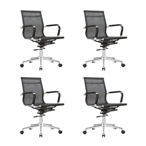 A cadeira Sydney Diretor é toda em tela com aço cromado. A tela garante resistência e conforto para quem estiver usando, além de também possuir seus braços revestidos, para que a pele não entre em contato com o metal direto. Ela possui o sistema relax para que seja melhor para seus usuários, travando na vertical, ou balançando de acordo com o movimento do corpo. Altura do Conjunto: 95 cm Ambiente: null Ambiente Principal: Escritório Cor: Preto Informação Complementar: 4x Cadeira Para Escritório Diretor Giratória Aço Cromado Sidney Preto Largura: 56 cm Altura: 95 cm Peso: 10,15 kg Profundidade: 60 cm Necessita Montagem: Sim