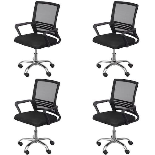 A cadeira office Lyon baixa possui estrutura e encosto em Nylon com tela mesh , base giratória cromada com rodas em PU que não danificam o piso. Ela proporciona conforto e praticidade ao usuário é Ideal para aperfeiçoar e decorar seu escritório, sala de reunião e home office. Altura do Conjunto: 98 cm Ambiente: null Ambiente Principal: Escritório Cor: Preto Cor do Produto: Preto Informação Complementar: 4x Cadeira Para Escritório Diretor Lyon Baixa em Tela Mesh Preto Largura: 59 cm Altura: 98 cm Peso: 8,5 kg Profundidade: 52 cm Necessita Montagem: Sim
