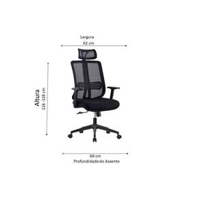 A Cadeira Presidente Comfort Plus,T possui em seu design Tela Mesh Apoio de Lombar e Cabeça, Braço PU, combina alta tecnologia e design inovador para proporcionar o máximo conforto durante as horas de trabalho, assento estofado com espuma densa, apoio de braços e mecanismo de postura, essa cadeira permite que o usuário mantenha a coluna reta e evite dores nas costas. Com encosto em Tela Mesh, garante durabilidade e elegância ao ambiente. Ideal para escritórios, recepções, home offices e salas de reunião, essa cadeira oferece design, conforto e praticidade. Com regulagem de braço, assento e encosto, essa cadeira pode ser ajustada de acordo com as necessidades do usuário. Altura do Conjunto: 128 cm Ambiente: null Ambiente Principal: Escritório Cor: Preto Informação Complementar: 2x Kit Cadeira para Escritório Presidente Comfort Plus Preto Largura: 69 cm Altura: 128 cm Peso: 12 kg Profundidade: 62 cm Necessita Montagem: Sim