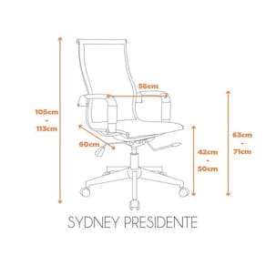 A cadeira Sydney Presidente é toda em tela com aço cromado. A tela garante resistência e conforto para quem estiver usando, além de também possuir seus braços revestidos, para que a pele não entre em contato com o metal direto. Ela possui um assento alongado, o que a torna perfeita para salas de diretoria e mesas de reunião, além de possuir o sistema relax para que seja melhor para seus usuários, travando na vertical, ou balançando de acordo com o movimento do corpo. Altura do Conjunto: 113 cm Ambiente: null Ambiente Principal: Escritório Cor: Cinza Informação Complementar: 4x Cadeira Para Escritório Presidente Giratória Aço Cromado Sidney Cinza Largura: 56 cm Altura: 113 cm Peso: 9,47 kg Profundidade: 60 cm Necessita Montagem: Sim