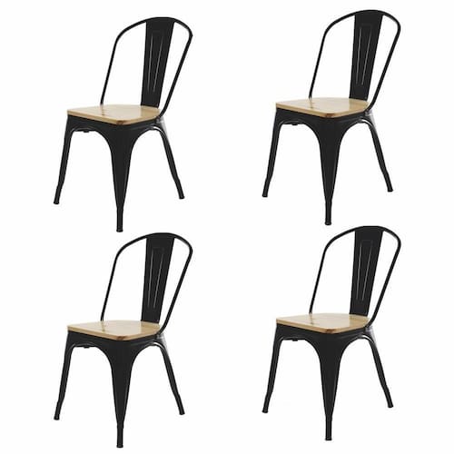 Kit 4 Cadeira Iron Tolix Industrial Preta Com Assento De Madeira