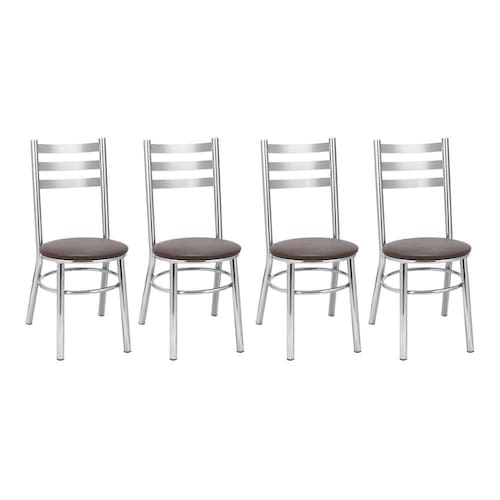 Já imaginou uma cadeira linda e confortável que agrega beleza à decoração e ainda faz com que as suas refeições sejam mais prazerosas? O Kit com 4 Cadeiras - Tre Paroni com acabamento cromado é uma excelente opção para deixar a sua sala de jantar ou cozinha mais aconchegante e com um visual elegante, além de ter um assento extremamente confortável! Acabamento: Cromado Acabamento da Estrutura: Cromada Almofada do assento: Fixa Altura do assento até o chão: 47 cm Altura dos Pés: 47 cm Altura Máxima dos Pés: 47.0000 Ambiente Principal: Sala de Jantar codigo_ean: 7898585968081 Complexidade da Montagem: Baixa: pode ser montado por uma pessoa sozinha Cor: Cromado/Marrom Cor do Produto: Cromado/Marrom Cor dos Pés: Cromado Dimensões do assento: 39 cm Dobrável: Não Enchimento do Assento: Espuma D-14 Escala de Brilho: Brilhante Estrutura do Assento: Aglomerado Giratória: Não Informações Complementares: Conjunto de 4 Cadeiras Cromadas com Assento estofados na cor Marrom. Itens Inclusos: 4 Cadeiras, Kit Ferragens e Manual de Montagem Manual de Montagem e Instalação: https://product-hub-prd.madeiramadeira.com.br/622003616/documents/960b1421-7e0c-4cbf-8a42-8f32f8a060283145809492517555810942497.pdf Marca: TRE PARONI Material da Base: Aço Material Principal: Aço Necessita Montagem: Sim Origem do Produto: Nacional Peso: 4,5 kg Possui Apoio para Braços: Não Possui Apoio Para os Pés: Não Possui Assento/Encosto Estofados: Possui Somente o Assento Estofado Possui Espaldar: Sim Possui Rodízio: Não Quantidade de Itens: 4 Recomendações de Uso, Manutenção e Limpeza: Deve ser feita com pano macio e seco ou levemente umedecido com água e sabão neutro. Não devem ser utilizados abrasivos como palha de aço e objetos cortantes. Revestimento do Assento: Sintético Sistema de Montagem: Parafusos Tamanho do Produto: 89 cm x 42 cm x 46 cm Tipo de Assento: Fixo Tipo de Encosto: Fixo