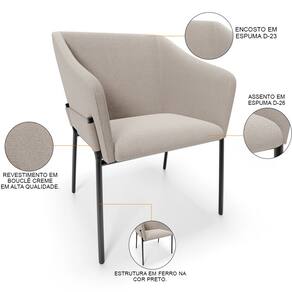 Que tal inovar na sala de jantar e apostar em um modelo de cadeira de jantar estilo poltrona?! Isso mesmo, com o Kit 04 Cadeiras Para Sala de Jantar Estar Living Olívia L02 Bouclê Creme, da Lyam Decor, você pode.