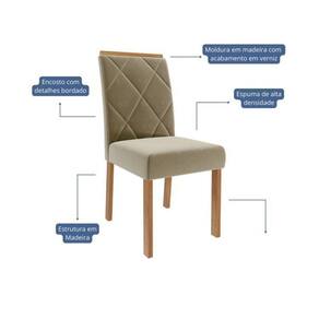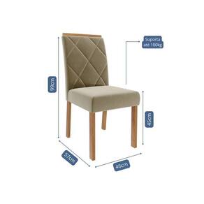 O Conjunto 4 Cadeiras Fernanda une design sofisticado e conforto excepcional. Estruturada em madeira de eucalipto, reconhecida pela sua resistência e durabilidade, a peça traz assento e encosto estofados com espuma de alta densidade, proporcionando máximo conforto. O revestimento em tecido sued confere um toque macio e refinado, enquanto o encosto com detalhes bordados valoriza o visual com um acabamento elegante. Ideal para salas de jantar que buscam estilo e aconchego, a Cadeira Fernanda é sinônimo de qualidade e bom gosto. Acabamento: Verniz Altura do Conjunto: 99 cm Ambiente: null Ambiente Principal: Sala de Jantar Cor: Joli Informação Complementar: 2x Jogo com 02 Cadeiras Fernanda Wood Ii Madeira/ Joli Largura: 46 cm Altura: 99 cm Peso: 18 kg Profundidade: 57 cm Necessita Montagem: Sim