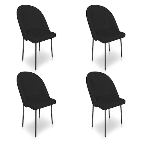 Kit 4 Cadeiras Poltrona De Jantar Ariel Suede Preto Pés De Ferro Preto - Pallazio
