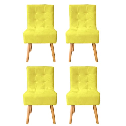 Kit 4 Cadeiras Poltrona Sala de Jantar Penteadeira Reforçada Decorativa Liz Suede Amarelo