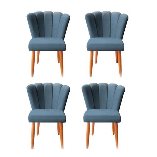 Kit 4 Cadeiras Poltrona Sala de Jantar Penteadeira Reforçada Decorativa Pétala Suede - Azul Marinho