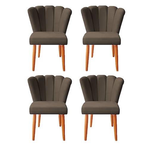 Kit 4 Cadeiras Poltrona Sala de Jantar Penteadeira Reforçada Decorativa Pétala Suede - Marrom