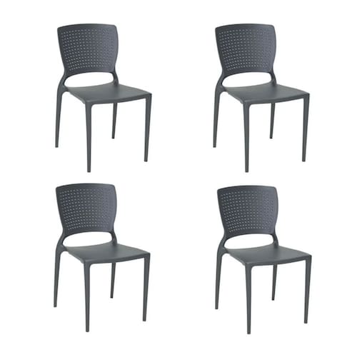 A Cadeira Safira Grafite Tramontina é feita de polipropileno e fibra de vidro.