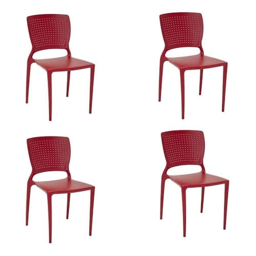 CADEIRA SAFIRA VERMELHA TRAMONTINA É BOA?A Cadeira Safira Vermelha Tramontina é excelente! Por conta de seu encosto perfurado, a Cadeira Safira Vermelha Tramontina é uma cadeira que se destaca perante os demais modelos. É uma cadeira que combina em todos ambientes, tanto em salas de jantar, cozinhas, quiosques, padarias, bares, restaurantes, dentre todos os outros segmentos do mercado. E é claro combina perfeitamente com a sua casa.