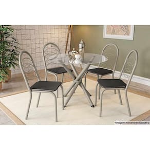 Cadeira Sala de Jantar Holanda 4C009NK Kit 4 Un Níquel/Courano Preto - Kappesberg