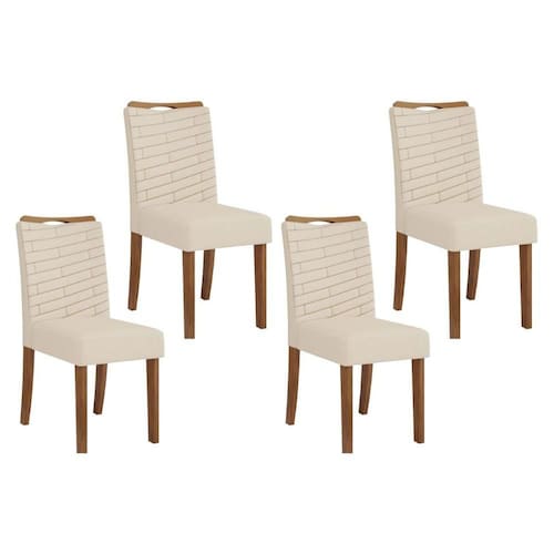 Kit 4 Cadeiras Sala Jantar Julia 4 un Freijo/Linho Neve - DJ Móveis - Blush
