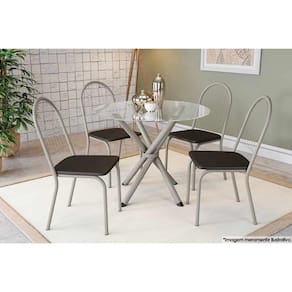 Cadeira Sala de Jantar Noruega 4C077 Kit 4 Un Níquel/Courano Preto - Kappesberg