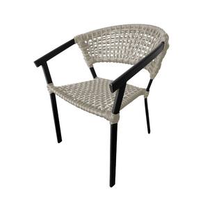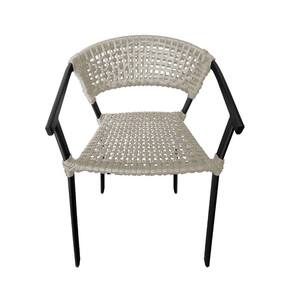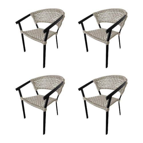 Kit 4 Cadeiras Sofia Corda Náutica Base em Alumínio Preto/areia - Bege
