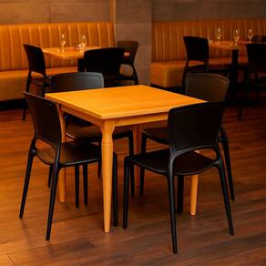 O Kit 4 Cadeiras Tramontina Sofia Preta e Mesa de Madeira 80cm Natural é a combinação perfeita de beleza, resistência e praticidade para compor ambientes residenciais e comerciais. O conjunto acompanha 4 Cadeiras Sofia com encosto fechado na cor preta, produzidas em polipropileno de alta qualidade e fibra de vidro, oferecendo excelente durabilidade e suporte de até 182 kg por assento. Além de robustas, as cadeiras são empilháveis, o que facilita o armazenamento e otimiza o espaço quando não estão em uso. Para complementar, o kit inclui 1 mesa em madeira natural acetinada, medindo 80 x 80 x 76 cm, com acabamento refinado e estrutura firme, ideal para o uso diário. Com design moderno e funcional, este conjunto é perfeito para restaurantes, bares, cafés, lanchonetes, cozinhas, áreas gourmet e residências, trazendo elegância e praticidade para qualquer ambiente.