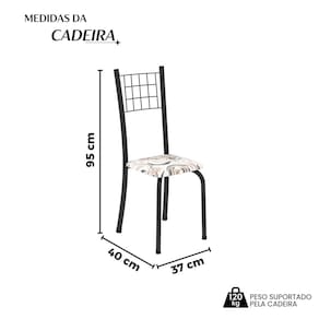 Este lindo Kit 4 Cadeiras Tubular irá embelezar ainda mais a sua cozinha, área de lazer e ainda completar o seu conjunto de mesa deixando-o mais receptivo e bonito e sempre disponível para receber a visita de amigos, familiares e convidados. Você vai se apaixonar pela resistência e durabilidade! Proporcionando a você um maior conforto ao se sentar. O Conjunto ideal para quem procura qualidade e praticidade. Aproveite!! Acabamento da Estrutura: Pintura Ambiente Principal: Cozinha codigo_ean: 7900288121493 Complexidade da Montagem: Baixa: pode ser montado por uma pessoa sozinha Cor: Arabesco / Preto Cor do Produto: Arabesco / Preto Escala de Brilho: Semi-Brilho Estrutura do Assento: MDP Itens Inclusos: Kit 4 Cadeiras, Kit Ferragem e Manual de Montagem Linha ou Coleção: Dany Manual de Montagem e Instalação: https://product-hub-prd.madeiramadeira.com.br/272201933/documents/0a63f9b3-3e08-4d67-ad82-b535c69aba4ae2669835352817387831909577.pdf Marca: Soma Móveis Material Principal: Aço Necessita Montagem: Sim Origem do Produto: Nacional Peso: 3 kg Possui Rodízio: Não Recomendações de Uso, Manutenção e Limpeza: Limpar com flanela ou pano Pano levemente umedecido e pano seco. Não utilizar produtos abrasivos. Não expor o produto diretamente à luz solar e à umidade. Sistema de Montagem: Parafusos Tipo de Assento: Fixo Marca: Não Informado