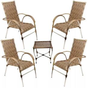 Kit 4 Cadeiras Vênus E Mesa De Centro Garden Capuccino - Marrom