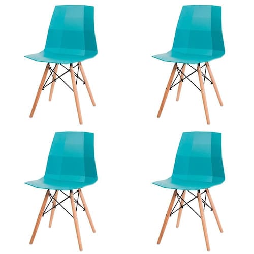 Kit 4 Cadeirass ANM6007F DKR Anima Office Polipropileno Turquesa Encosto Anatômico Base Madeira - Azul