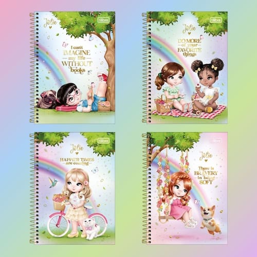 A Caderneta Espiral 1/8 (PEQUENA) possui capa dura com detalhe metalizado, parte interna decorada,folhas pautadas decoradas e espiral colorido. Ideal para o dia a dia.