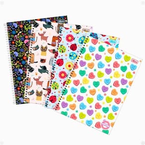 Neste kit é encaminhado 4 unidades de caderno, sendo a capa uma de cada estampa