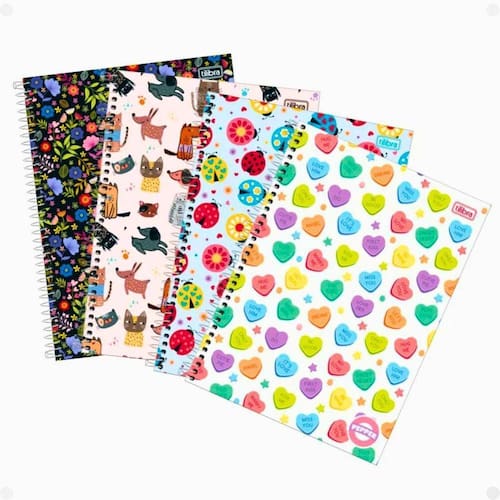 Neste kit é encaminhado 4 unidades de caderno, sendo a capa uma de cada estampa
