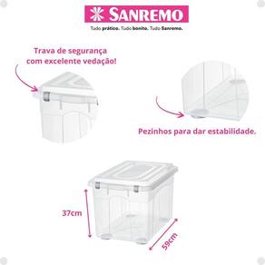 Kit 4 Caixa Alta Organizadora Brinquedo Objeto 56l Sanremo Kit 4 Caixas Altas Organizadoras 56,1 Litros Sanremo - Organização e Espaço para Suas Necessidades A Caixa Alta Organizadora 56,1 Litros Sanremo é a solução perfeita para quem busca praticidade e eficiência na organização dos espaços. Com um design moderno e funcional, esta caixa organizadora é ideal para armazenar uma variedade de itens, mantendo tudo em ordem e facilmente acessível. Características Principais Capacidade Generosa: Com uma capacidade de 56,1 litros, a caixa oferece amplo espaço para armazenar diversos tipos de objetos, desde roupas e brinquedos até ferramentas e materiais de escritório. Material Durável: Fabricada em polipropileno de alta qualidade, a caixa é resistente e durável, suportando o uso diário e protegendo os itens armazenados. Transparência Prática: A caixa possui um corpo transparente, permitindo visualizar o conteúdo sem a necessidade de abrir a tampa, facilitando a identificação rápida dos itens. Tampa Segura: A tampa possui um encaixe perfeito e firme, garantindo que os itens fiquem protegidos contra poeira e umidade. As travas laterais adicionais proporcionam segurança extra. Design Empilhável: Projetada para ser empilhável, a caixa permite otimizar o espaço de armazenamento, mantendo tudo organizado e economizando espaço. Alças Integradas: As alças laterais facilitam o transporte, mesmo quando a caixa está cheia, garantindo praticidade no manuseio. Benefícios Adicionais Versatilidade de Uso: Ideal para uso em casa, no escritório, em garagens ou áreas de serviço, a caixa organizadora é versátil e atende a diversas necessidades de organização. Fácil de Limpar: O material de polipropileno é fácil de limpar, permitindo que a caixa mantenha sua aparência nova e higiênica por mais tempo. Estilo Moderno: Com um design clean e moderno, a caixa se integra bem em qualquer ambiente, seja ele residencial ou comercial. Ideal Para Organização Residencial: Perfeita para organizar roupas sazonais, brinquedos, utensílios domésticos e muito mais. Uso em Escritórios: Ideal para armazenar materiais de escritório, documentos e outros suprimentos, mantendo o ambiente de trabalho ordenado. Armazenamento em Garagens e Oficinas: Excelente para guardar ferramentas, equipamentos e peças, facilitando o acesso e a organização. Especificações Técnicas Dimensões: 59cm x 57cm x 41cm Peso: 1,600kg Capacidade: 56,1 litros Material: Polipropileno de alta qualidade Cor: Transparente Período de : 30 dias A Caixa Alta Organizadora 56,1 litros Sanremo é a escolha ideal para quem busca organizar o espaço de forma prática e eficiente. Com sua capacidade generosa, durabilidade e design funcional, ela facilita a vida cotidiana, mantendo tudo em ordem e ao seu alcance. Invista na organização e na qualidade com a Caixa Alta Organizadora Sanremo e transforme o seu espaço em um ambiente mais prático e organizado. Conteúdo da Embalagem: 4 Caixas Alta Organizadora 56,1 litros A caixa pode ser Utilizado em ambientes externos A caixa é ideal para uso em ambientes internos. Se for utilizada em ambientes externos, recomenda-se protegê-la de exposição direta ao sol e à chuva para prolongar sua durabilidade. A caixa é adequada para armazenar alimentos não, a caixa não é recomendada para armazenar alimentos, pois não possui certificação para contato com alimentos. É ideal para armazenar itens domésticos, de escritório, ferramentas, entre outros. A caixa é empilhável sim, a caixa foi projetada para ser empilhável, permitindo otimizar o espaço de armazenamento e mantendo tudo organizado.