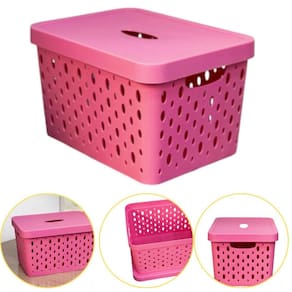 Kit 4 Caixa Cesto Organizador Multiuso Empilhável 17 L Rosa Bebê KIT 4 Caixa Cesto Organizador Multiuso Empilhável 17 L Rosa Bebê