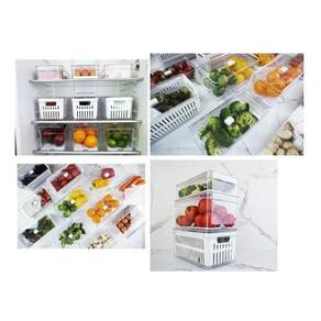 Kit 4 caixa organizadora geladeira frutas verduras legumes f6079 Cor: transparente F6079 Maple decor Descrição Organizador para geladeira clear fresh com cesto legumes frutas e verduras Com o organizador de geladeira clear fresh com cesto , você terá organização e irá conservar e manter o frescor de seus alimentos por mais tempo, a tampa com ventilação ajustável mantém o nível de umidade ideal para cada tipo de alimento, mantendo-os frescos por mais tempo. Possui um cesto de drenagem que impede que a umidade acumulada se mantenha no alimento, evitando que as hortaliças murcham e deterioração precoce. Características: - material bandeja - polipropileno; - material organizador - polientireno; - cor: transparente; - cesto para drenar agua dos alimentos; - medidas axlxc: 13 x 15 x 30cm; - peso: 600g; Vantagens: - ventilação e humidade controlada; - organização e otimização de espaço; - com cesto de drenagem removível; - capacidade 5l. Acompanha: 01 organizador clear fresh com cesto medidas axlxc: 13 x 15 x 30cm; 01 organizador clear fresh medidas axlxc: 13 x 15 x 30cm; 01 organizador clear fresh medidas axlxc: 7x 15 x 30cm;