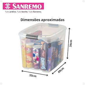 Kit 4 Caixa Organizadora Multiuso 36l Sanremo Kit 4 Caixas Organizadoras Multiuso 36l Sanremo A Caixa Organizadora Multiuso 36 litros Sanremo é a solução perfeita para quem busca praticidade e eficiência na organização dos espaços. Com um design moderno e funcional, esta caixa organizadora é ideal para armazenar uma variedade de itens, mantendo tudo em ordem e facilmente acessível. Características Principais Capacidade Generosa: Com uma capacidade de 36 litros, a caixa oferece amplo espaço para armazenar diversos tipos de objetos, desde mantimentos e material de limpeza e higiene, a brinquedos e até ferramentas e materiais de escritório. Material Durável: Fabricada em polipropileno de alta qualidade, a caixa é resistente e durável, suportando o uso diário e protegendo os itens armazenados. Transparência Prática: A caixa possui um corpo transparente, permitindo visualizar o conteúdo sem a necessidade de abrir a tampa, facilitando a identificação rápida dos itens. Tampa Segura: A tampa possui um encaixe perfeito e firme, garantindo que os itens fiquem protegidos contra poeira e umidade. As travas laterais adicionais proporcionam segurança extra. Design Empilhável: Projetada para ser empilhável, a caixa permite otimizar o espaço de armazenamento, mantendo tudo organizado e economizando espaço. Alças Integradas: As alças laterais facilitam o transporte, mesmo quando a caixa está cheia, garantindo praticidade no manuseio. Benefícios Adicionais Versatilidade de Uso: Ideal para uso em casa, no escritório, em garagens ou áreas de serviço, a caixa organizadora é versátil e atende a diversas necessidades de organização. Fácil de Limpar: O material de polipropileno é fácil de limpar, permitindo que a caixa mantenha sua aparência nova e higiênica por mais tempo. Estilo Moderno: Com um design clean e moderno, a caixa se integra bem em qualquer ambiente, seja ele residencial ou comercial. Ideal Para Organização Residencial: Perfeita para organizar brinquedos, utensílios domésticos e muito mais. Uso em Escritórios: Ideal para armazenar materiais de escritório, documentos e outros suprimentos, mantendo o ambiente de trabalho ordenado. Armazenamento em Garagens e Oficinas: Excelente para guardar ferramentas, equipamentos e peças, facilitando o acesso e a organização. Especificações Técnicas Dimensões aproximada da unidade: 48,7cm de largura x 33,5cm de altura x 33cm de profundidade Peso aproximado unidade: 1kg Capacidade: 36 litros Material: polipropileno de alta qualidade Cor: transparente Período de : 30 dias A Caixa Organizadora Multiuso 36 litros Sanremo é a escolha ideal para quem busca organizar o espaço de forma prática e eficiente. Com sua capacidade generosa, durabilidade e design funcional, ela facilita a vida cotidiana, mantendo tudo em ordem e ao seu alcance. Invista na organização e na qualidade e transforme o seu espaço em um ambiente mais prático e organizado. Conteúdo da Embalagem: 4 Caixas Organizadoras Multiuso 36 litros A caixa pode ser Utilizado em ambientes externos A caixa é ideal para uso em ambientes internos. Se for utilizada em ambientes externos, recomenda-se protegê-la de exposição direta ao sol e à chuva para prolongar sua durabilidade. A caixa é empilhável sim, a caixa foi projetada para ser empilhável, permitindo otimizar o espaço de armazenamento e mantendo tudo organizado.
